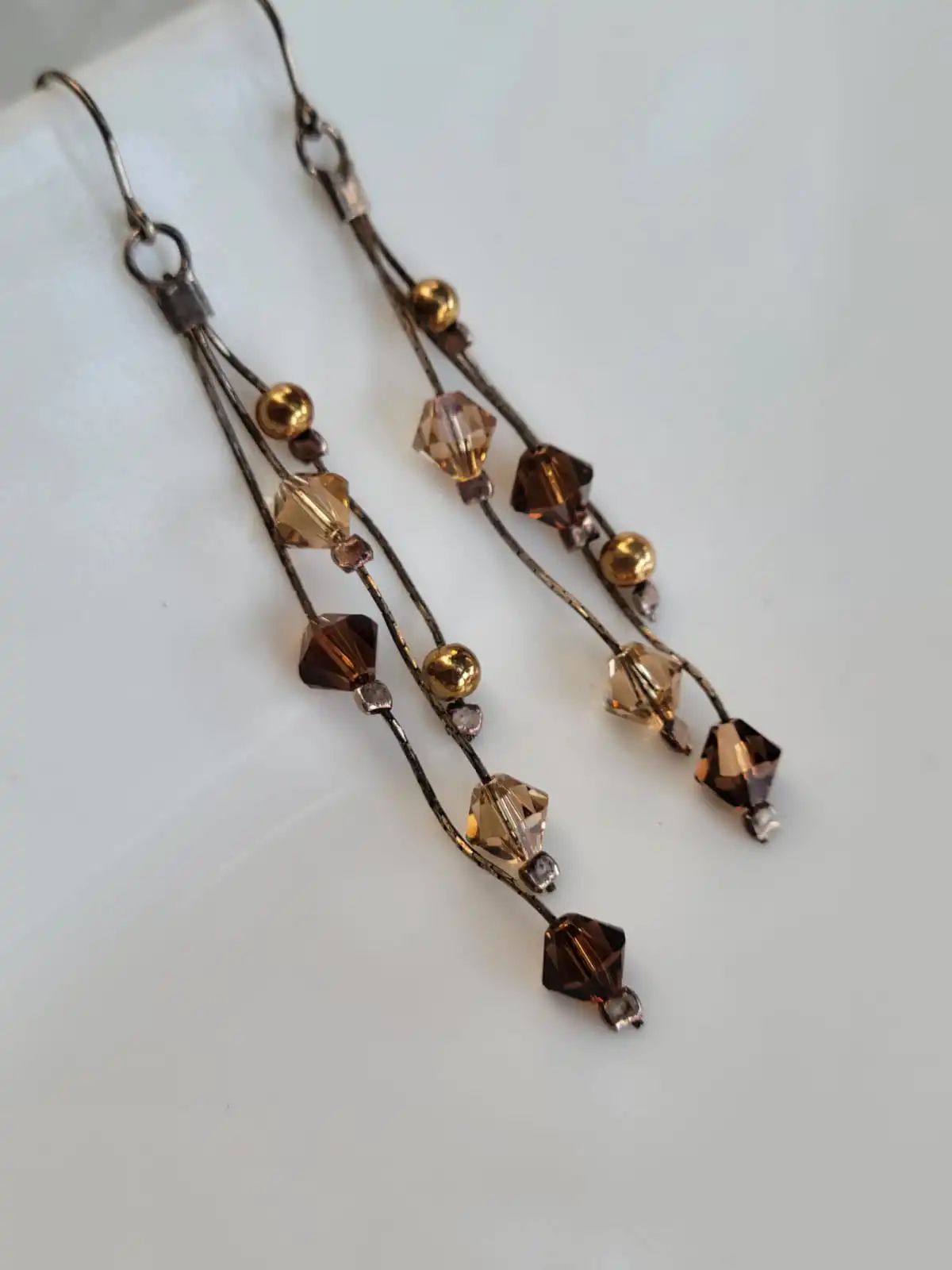 • עגילי כסף 925 תלויים בשילוב אבני סברובסקי מעובדות