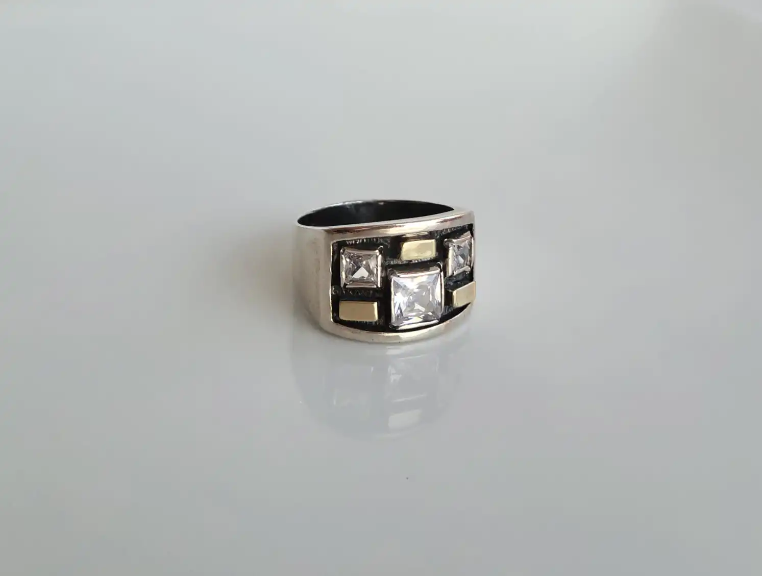 טבעת כסף 925 בשילוב פלטות זהב 9K ואבני זירקוניה מעובדות