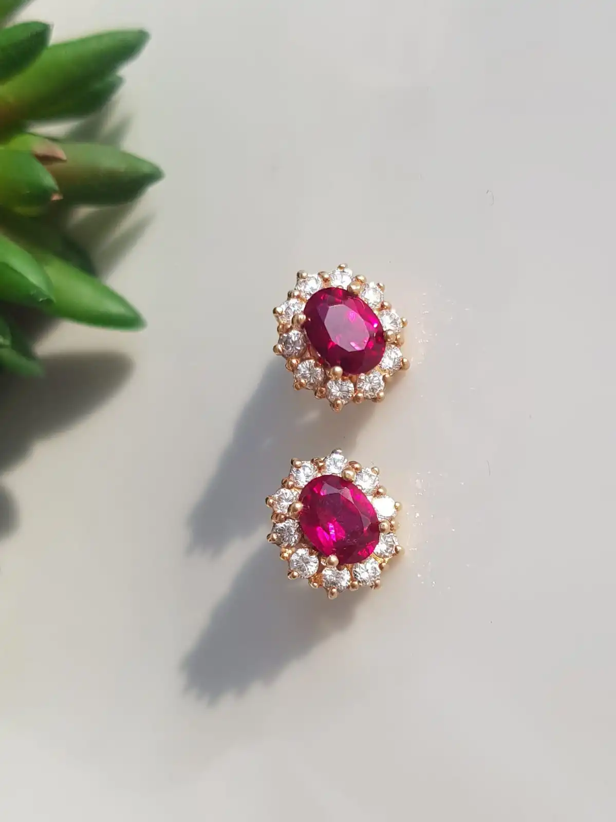 עגילי גולדפילד 'דיאנה' צמודים בשילוב אבן אדומה וזירקוניה