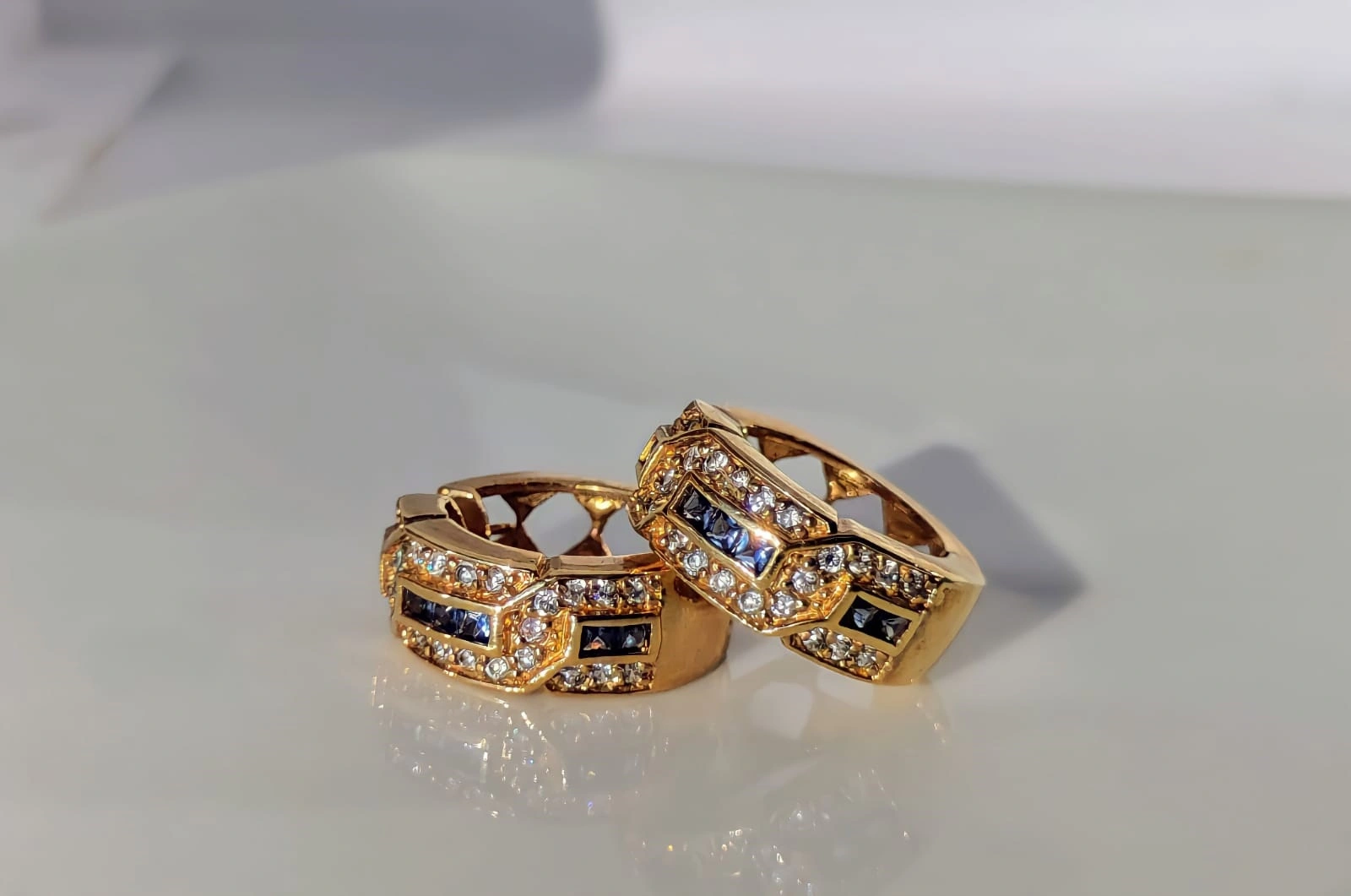 עגילי חישוק גולדפילד בשילוב אבני זירקוניה וסברובסקי שחור