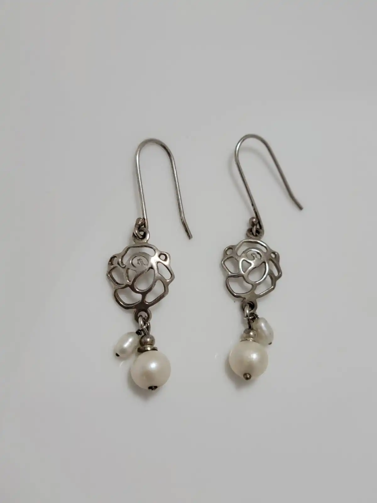 עגילי כסף 925 תלויים בעיטור פרח בשילוב פנינה